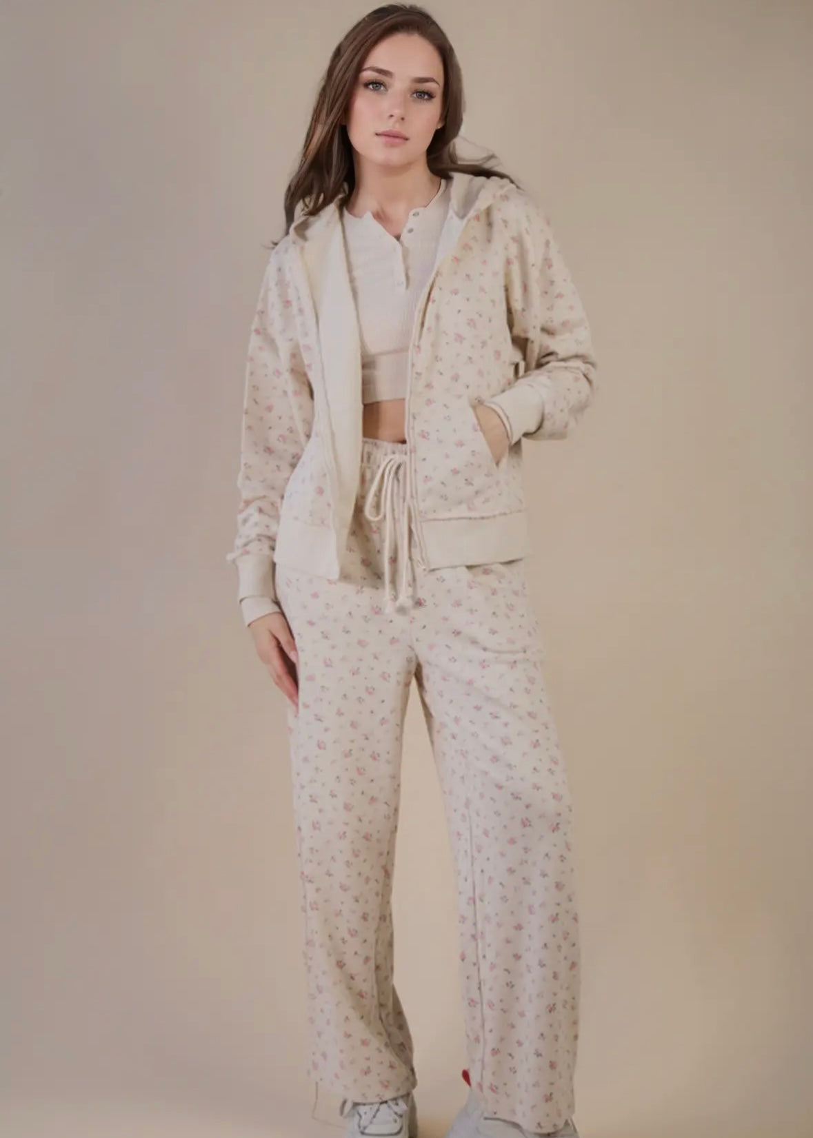 - Oversized Floral Printed Zip Up Casual Hoodie Top